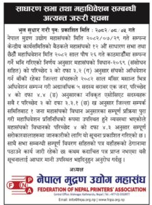 The Federation of Nepal Printers’ Association (FNPA) is Nepal’s leading umbrella organization for printing industries and allied corporate houses. Bringing together district-level printers’ associations, entrepreneur groups, and corporate members, FNPA champions the growth and innovation of Nepal’s printing sector.